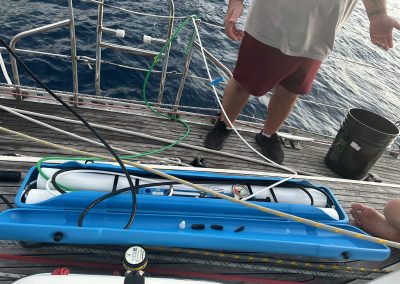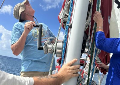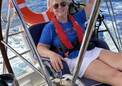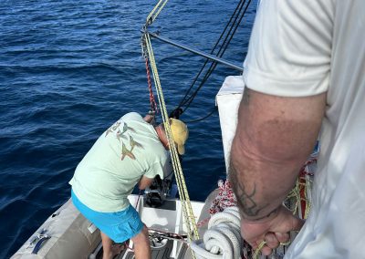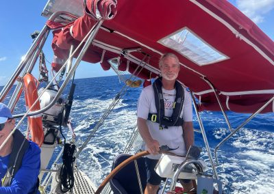 The boat we sailed on had no problem handling the sea state. “Lollygag II”, a Helmsman 47′, was happily reaching across the large waves with a very sea kindly motion. She is a Danish build, that is likened to a Swan. Set up with a bunch of long-distance cruising features such as solar and wind power, Monitor self-steering windvane, water maker and much more. We learned how to make clean drinking water out of the sea, so water was never a concern. We sat in the cockpit enjoying the flying fish while the windvane steering system, guided the boat flawlessly through the big winds and swells.