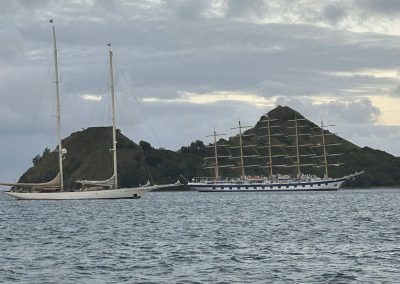 On our sailing voyage, the weather was always a balmy 84 degrees, broken each day by a brief five-minute rain shower accompanied by a stunning rainbow against a lush green backdrop.