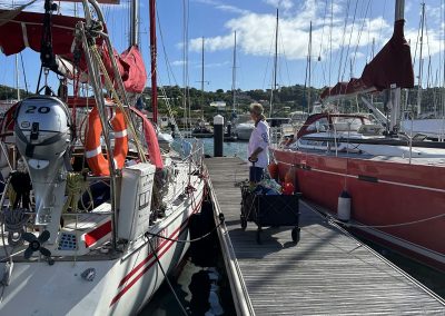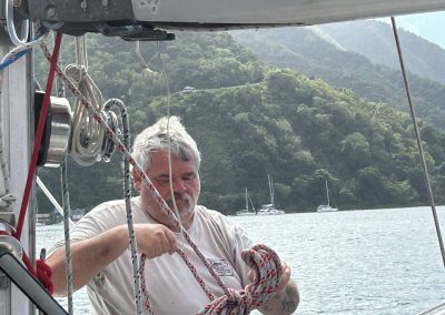 The sailing was spectacular as we had the infamous Christmas Winds that prevail from December to February. These are reinforced trade winds that blow in the high teens with gusts up into high twenty knot range. These winds are fairly consistent blowing from east to northeast, providing nice beam reach and close reaching sailing up and down the Windward chain of islands. In the channels between islands we found big winds and mature waves as we reached down to St. Vincent.